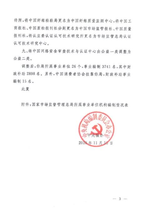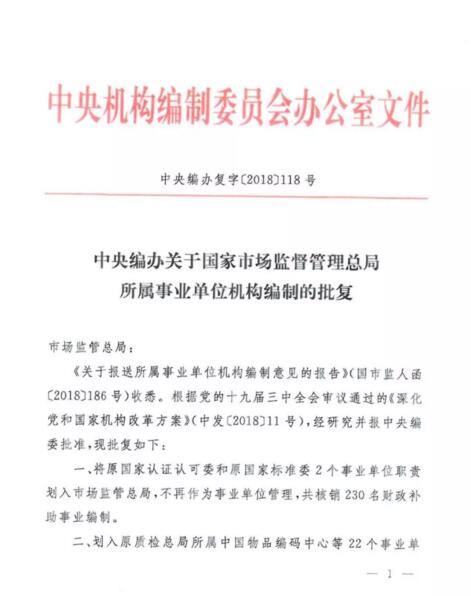 其實在2018年11月15日中央機構編制委員會辦公室印發的文件中第三條明確批復: